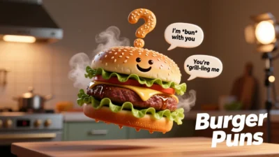 Puns And Joks3 Min Read Haruki MurakamionNovember 13, 2025 🍔 540+Burger Puns That Are a Real Mouthful of Laughter For 2025 Feeling a little grill-ty about how much you love burgers? Don’t worry—you’re not alone! Whether you’re a foodie, a pun lover, or just here to… Discover More
